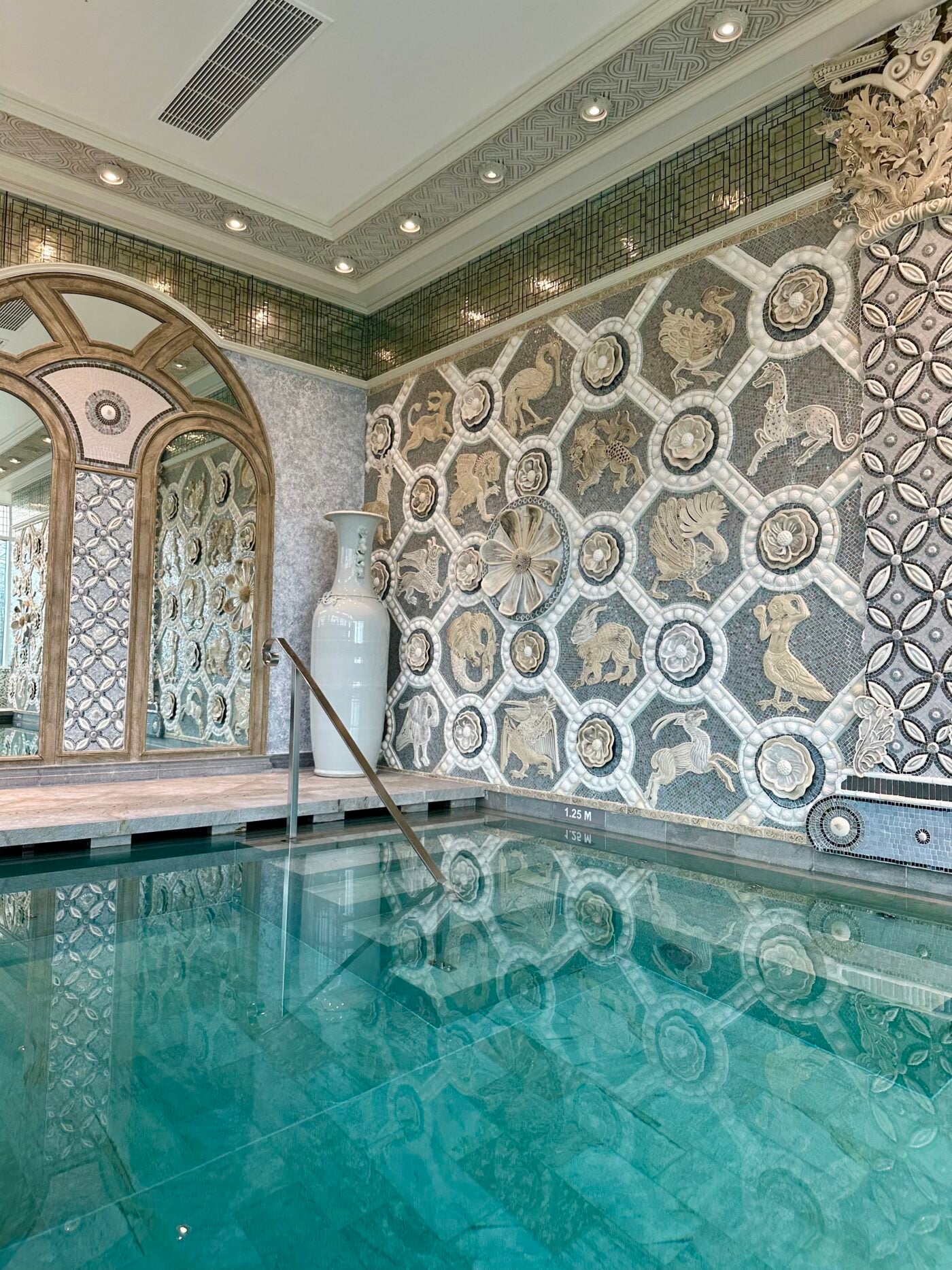 There are five beautiful treatment rooms, a steam room, and that stunning relaxation pool that is so relaxing. The whole spa feels so peaceful and refined. The magical mosaic details around the pool area make it feel even more special. It really transports you to total calm. I had been to the spa once before with my friends so I was delighted to return for more relaxation.